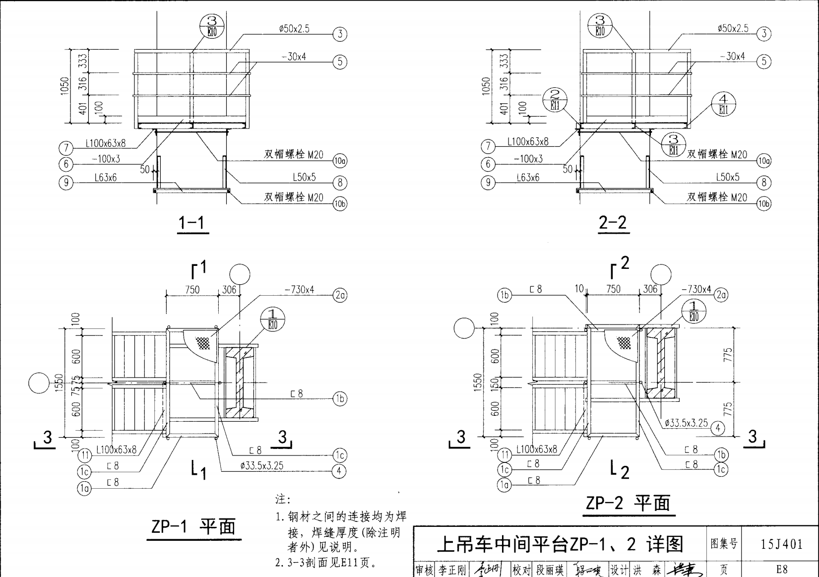 上吊车中间平台ZP-1.2详图