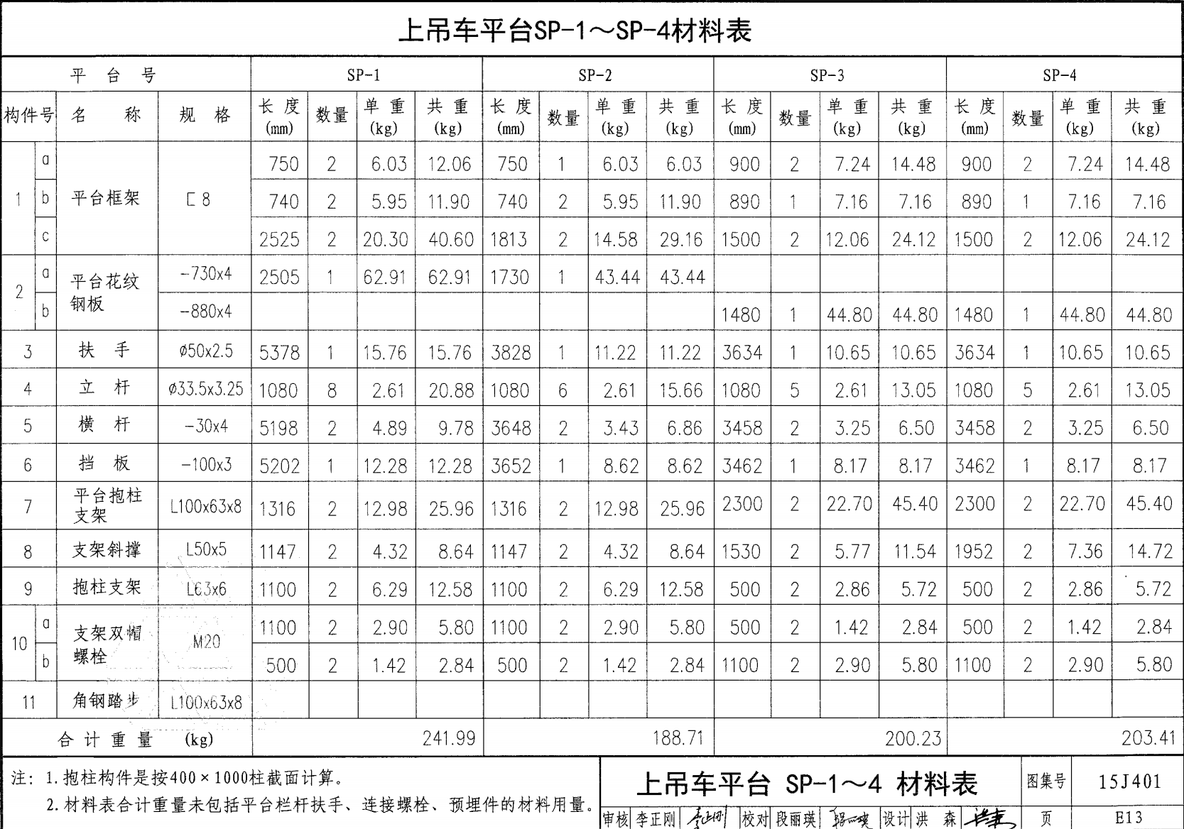 上吊车平台SP-1 SP 材料表